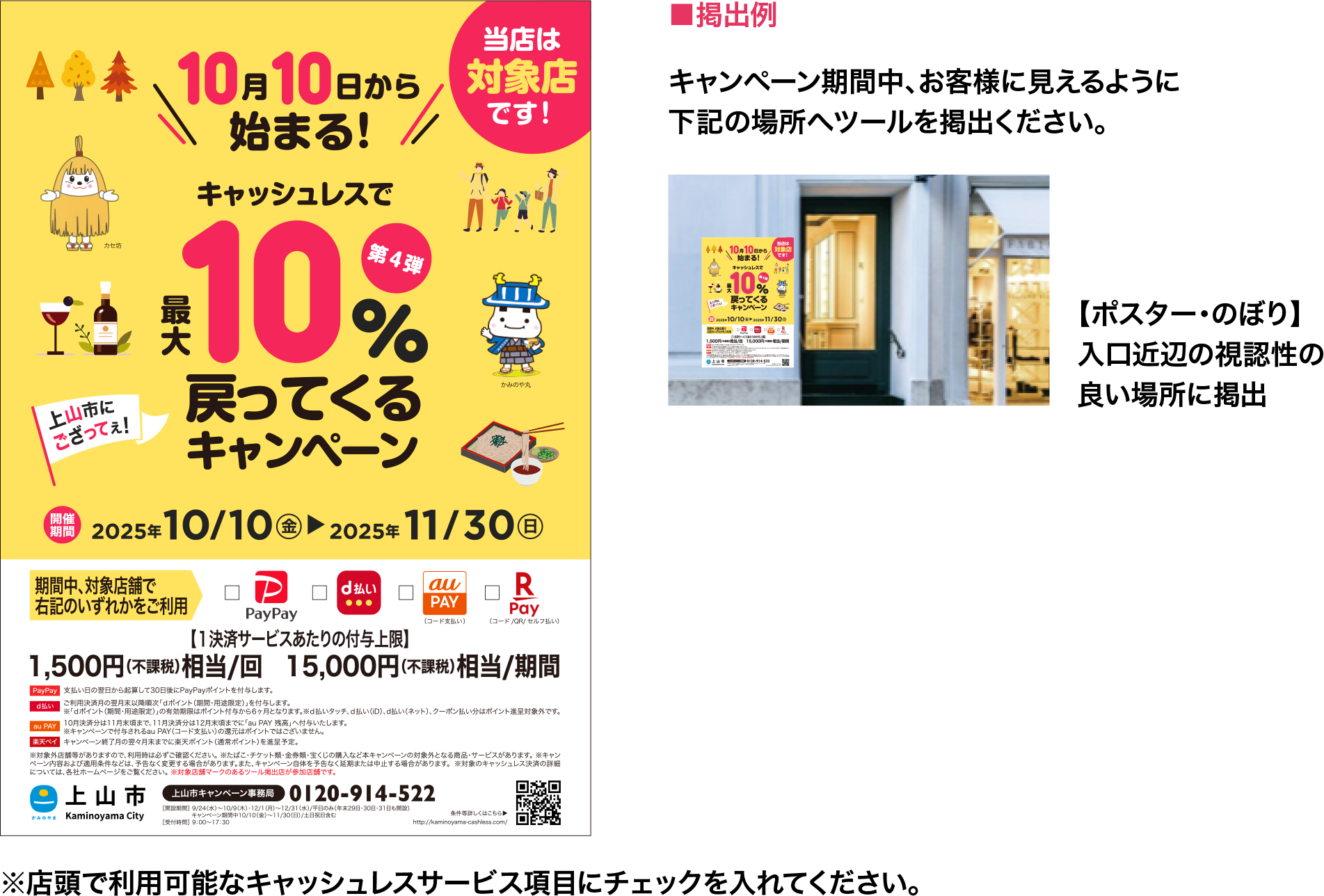 キャンペーン期間中、お客様に見えるようにツールを掲出ください。